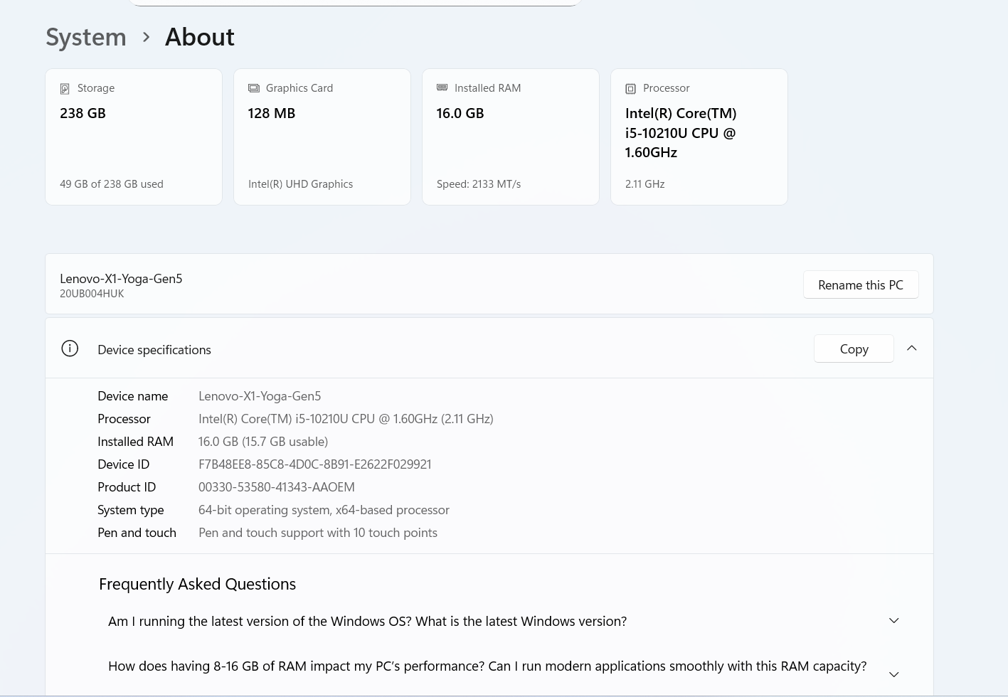 Lenovo ThinkPad X1 Yoga 2in1 i5 10th Gen 16GB 512/1TB 14" Touch 360 Laptop