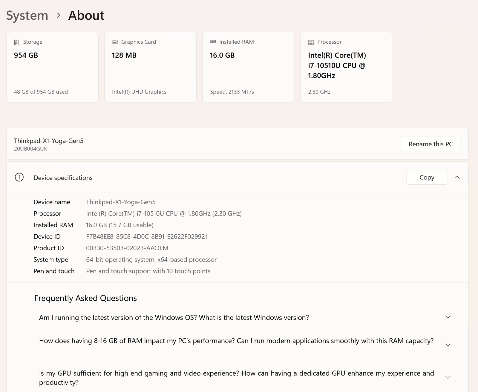 - Processor: Intel Core i7-10510U @ 1.8Ghz
